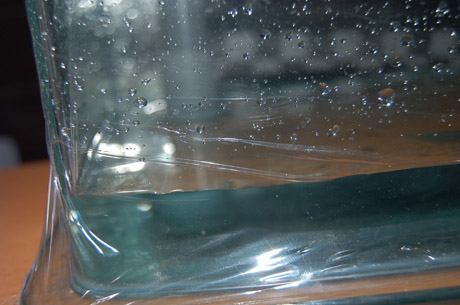 空気が溜まらないで小さな気泡が連続して出るようにしてみました。