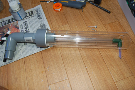 まだ、アクリル管は接着していないのでシールテープを巻いて