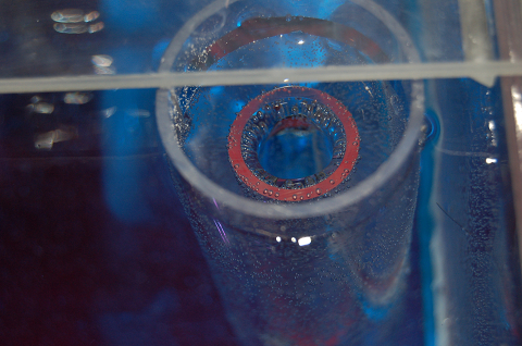 外周部のみ水が廻って真ん中の穴が開いていないところには嫌気バクテリア用にナイトレイトマイナス入れたBOXが埋まっています。 循環濾過に挑戦です^^;