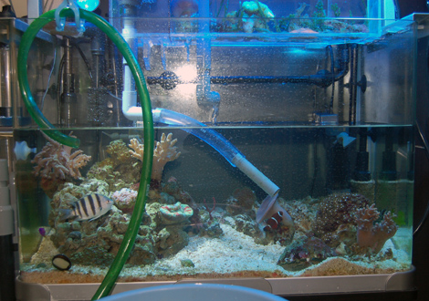 ヒーターで海水を温めている間に60センチの水抜きを。
